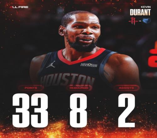 赛后,火箭官方发布申京和杜兰特本场比赛的数据海报。