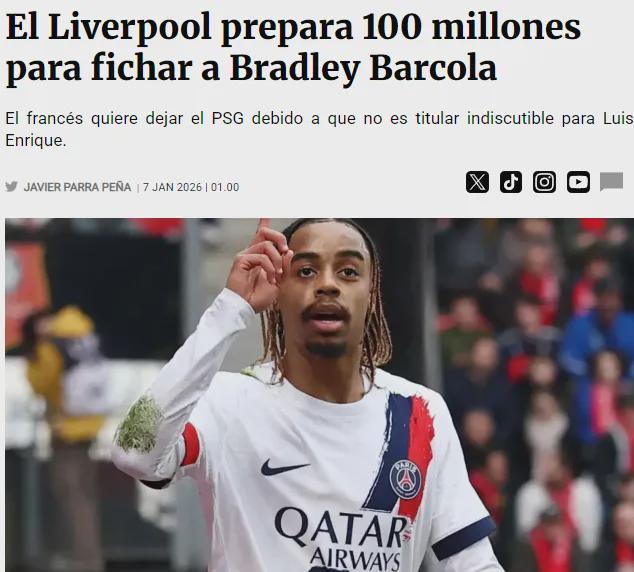 因此,若能签下巴尔科拉,利物浦将完成一笔着眼长远的重磅引援。利物浦 正在努力恢复那种令欧洲闻风丧胆的毁灭性进攻风格,而引进这位法国球员是这一计划的核心。这位年轻前锋的多面性使他能够在场上的两个边路活动,在面对紧逼防守或快速转换时提供战术解决方案。不过,安菲尔德方面最终能否在冬窗或夏窗将其带到英格兰,仍需观察。