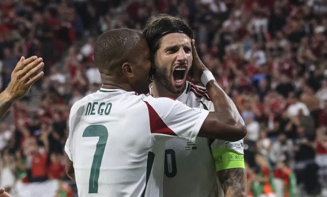 易边再战,葡萄牙攻势不减,第64分钟他们本有机会终结胜负悬念,但运气不佳,鲁本迪亚斯和B费两脚极具威胁的打门,都被主场的立柱弹出,10分钟之后,匈牙利也错失扳平良机,为球队首开纪录的绍洛伊头球攻门击中了横梁。在比赛的最后时刻,不甘心输球的匈牙利大举压上反扑,并且在第91分钟打入绝平进球,卢卡奇右路强行下底传中,利物浦中场索博斯洛伊后点铲射,将皮球挡入空门,将全场比分定格为了2-2平。