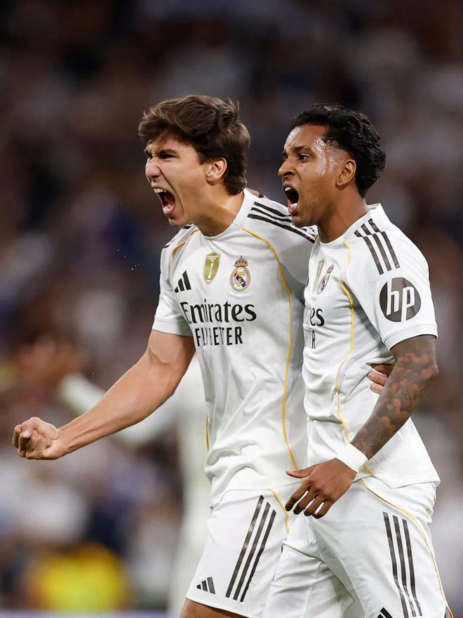 X(@realmadrid) hupu bilibili皇家马德里4-4-2哈维.阿隆索01 库尔图瓦 GK03 米利唐08 巴尔韦德 C 72'24 赫伊森18 卡雷拉斯05 贝林厄姆 90'06 卡马文加14 楚阿梅尼15 居莱尔 66'07 维尼修斯 72'10 姆巴佩 90'66' 21 卜拉辛72' 02 卡瓦哈尔 / 11 罗德里戈90' 16 冈萨洛 / 19 塞瓦略斯巴塞罗那/4-3-3/弗里克25 什琴斯尼 GK / 03 巴尔德(90' 18 G.马丁),05 库巴西(83' 28 巴尔德吉),23 孔德,24 埃里克.加西亚(74' 04 阿劳霍) / 08 佩德里(90' 亮黄变一红),16 费尔明,21 德容 / 07 费兰.托雷斯(74' 17 卡萨多),10 亚马尔,14 拉什福德13' 姆巴佩天外飞仙破门!VAR判罚越位在先。22' 这回真进了!贝林厄姆助攻姆巴佩单刀破门,1-0!