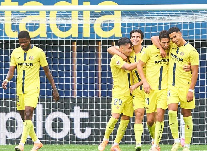 在积分榜上,皇马10胜1负的战绩太出色了,以30分高居榜首。比利亚雷亚尔7胜2平2负,拿到23分,排名第2。少赛一轮的巴萨只有22个积分,排名第3。马竞也是22分,净胜球落后,只能排名第4。西班牙人18分排名第5。第6的是赫塔费,拿到17分。