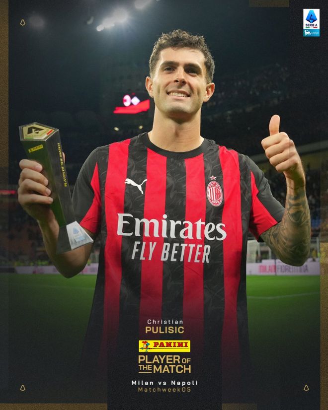 官方:普利西奇当选米兰vs那不勒斯全场最佳球员