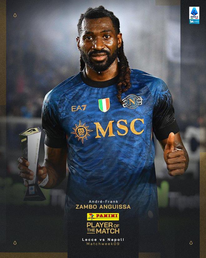 雷速体育10月29日讯 意甲第9轮,那不勒斯客场1-0小胜莱切。此役,安古伊萨凭借任意球头球破门,帮助那不勒斯锁定了胜局。赛后,意甲官方发布,安古伊萨当选本场比赛的最佳球员。