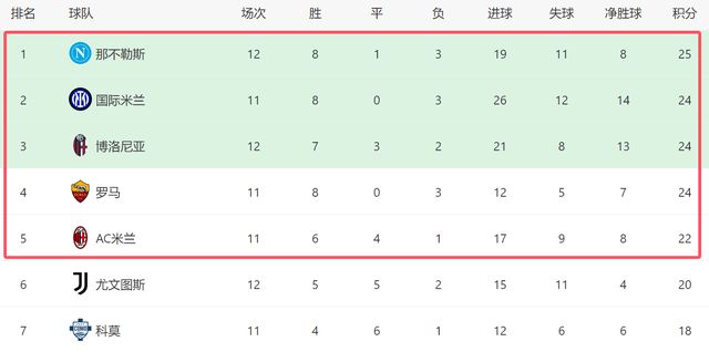 由于那不勒斯拿到了3分,意甲榜首也再度易主。截至目前,那不勒斯已经反超少赛1场的国米,再度在意甲积分榜登顶。本赛季,意甲争冠非常激烈,目前排名前5的球队,差距只有3分,接下来国米、罗马和AC米兰这3大强队,都有机会反超那不勒斯,成为意甲新的领头羊。至于尤文,他们本轮做客1-1战平佛罗伦萨,再度丢掉2分。换帅后,尤文又遭遇2连平,他们在争冠大战中,已经开始掉队。在踢完12轮之后,尤文已经被那不勒斯拉开了5分的差距。如果斯帕莱蒂不能解决尤文平局过多的问题,他们和榜首几名争冠对手的差距,还会越来越大。至少从目前来看,尤文并没有足够的实力竞争冠军,本赛季他们能拿到一个欧冠席位,就已经算得上成功了!