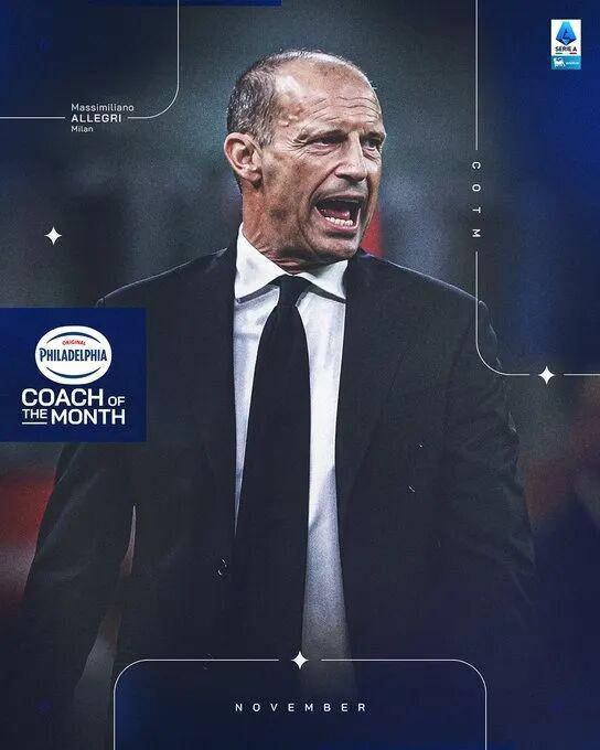 官方:AC米兰主帅阿莱格里当选意甲11月最佳教练