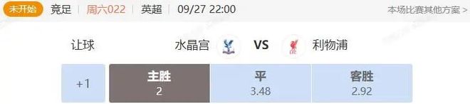 英超 水晶宫VS利物浦开赛时间:2025-09-27 22:00:00
