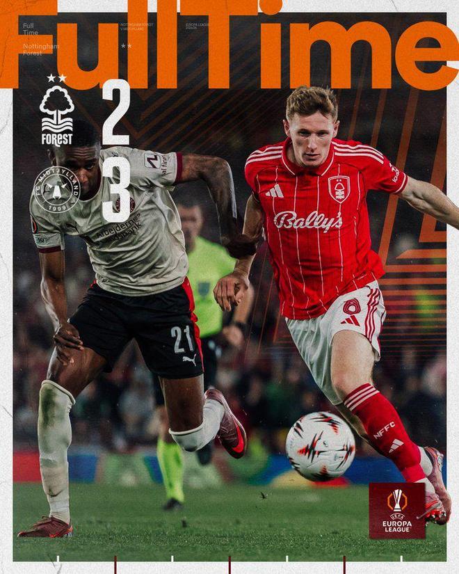 第24分钟,中日德兰再次领先。瑟伦森这一次自己进球,他头球顶进!身价只有500万欧元的瑟伦森表现真出色,传射建功。虽然此后诺丁汉森林接连换人调整,但是,却在第88分钟再度城门失守。比斯科夫推射破门,扩大比分。诺丁汉森林陷入了绝境。虽然最后时刻克里斯-伍德点球破门扳回一球。但时间所剩无几,诺丁汉森林没能再次进球。最终,诺丁汉森林2-3输给了中日德兰,爆出了大冷门,5.6亿欧元的豪阵也没用。本场比赛诺丁汉森林控球率高达61%,疯狂射门22次,其中9次射正,只进了2粒进球。而中日德兰虽然只有8次射门,但有5次射正,打进了3球,射门质量奇高。输掉这场比赛,意味着诺丁汉森林各项赛事8场不胜。