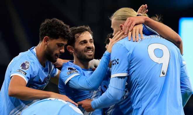 本场比赛曼城排出了4321阵型。哈兰德顶在最前面。谢尔基和多库在他身后。伯纳多-席尔瓦、尼科-冈萨雷斯和福登联袂出击。努内斯、鲁本-迪亚斯、格瓦迪奥尔和奥赖利4后卫首发出战。多纳鲁马担任首发门将。曼城首发阵容总身价6.72亿欧元。而伯恩茅斯首发阵容总身价只有2.6亿欧元。