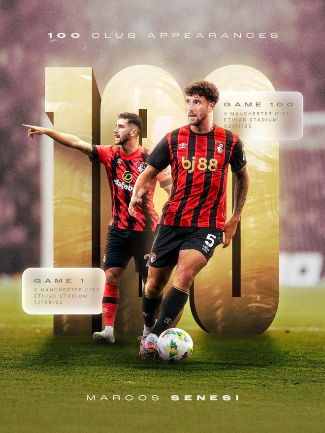 第10轮,伯恩茅斯客战曼城。赛前首发公布,塞门约、塔韦尼耶、塞内西首发,三人迎来伯恩茅斯生涯百场里程碑。