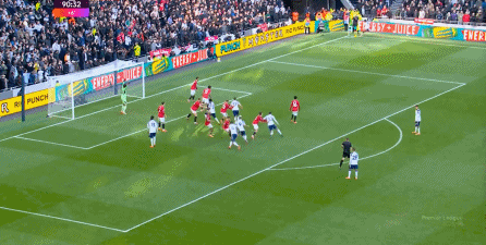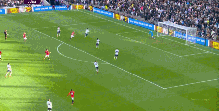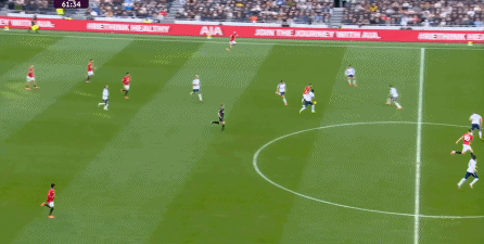 这个时候,当你再回想两次传中时的约罗的站位问题的时候,是不是就显得尤为重要了?足球比赛就是这样的:你在每一个区域,每一个位置上的每一个球员,所做的每一个动作的质量高低,都可能会在90分钟的时间长度和对手输出的强度变化下,成为下一个关键节点的导火索。所谓的教练们关注细节,其实就是在关注这些细枝末节的地方。但是,作为一支无论教练怎么看菜下饭,就像今天客场面对热刺,开局就摆出五后卫,随后在比赛当中或主动,或被动地换下两个后卫的球队,却能在比赛最后10分钟里连丢两球,你觉得这是一支可以实质上改善防守质量的球队吗?在我们看来,这是不能的,你只能带着这个11场丢18球的防守端进行比赛,所以真正能解决问题的,还是在向前的方向上。这个时候,阿莫林在开局的进攻端布置就显得尤为重要了。库尼亚代打中锋,在赛季初的单场比赛有效,是因为当时首发的左边锋是芒特,可以用逆足提供一条斜向的线路,从而和另一侧的逆足进攻端互相联系。然而,今天库尼亚代打中锋,姆贝乌莫顺足打在左侧,他自己可以凭借身体和速度稍有发挥,可是库尼亚呢?