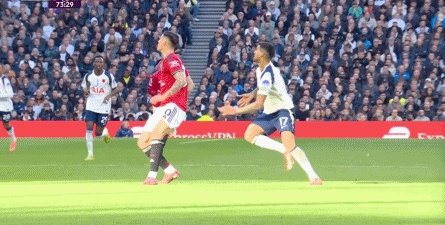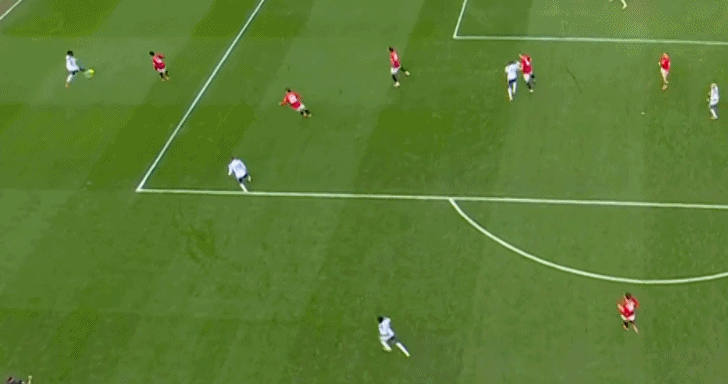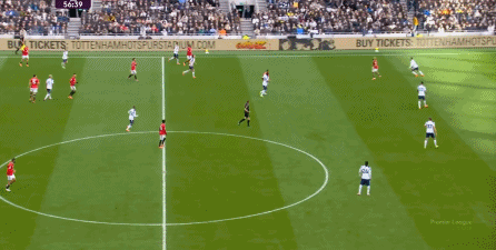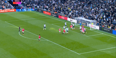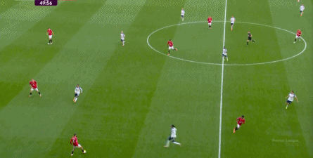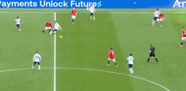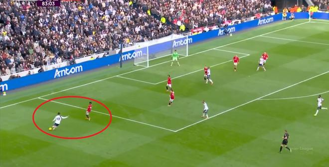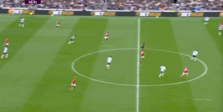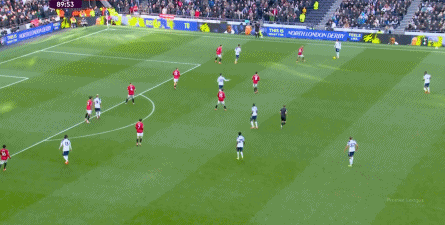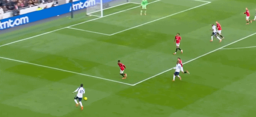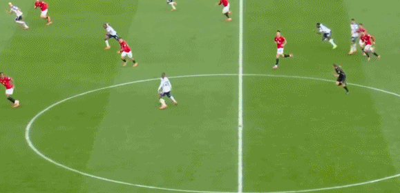 所以你可以看到,当热刺打得比0-0的时候更简单一些,其实就是将压力直接甩到曼联后卫的身上的时候,曼联就难免要出问题。哪怕当时的曼联在中后场已经换了3个人,看起来已经补充好了体能。但这就是我们不厌其烦,一直在说的观点:无论你在防守端如何调整和换人,曼联的防守问题几乎是无法解决的,因为你的球员的实力就是如此。只要对手压上来,持续地制造防守压力,曼联的防守端就会出乱子,这场比赛的曼联甚至因此折损了马奎尔。而这意味着什么?意味着未来几场比赛,约罗可能会重回首发了。老将和年轻球员各有问题,这一点完全可以得到理解,毕竟你用他们,就要在战术思考中考虑到他们现阶段的短板。但作为曼联后卫线最强一环,你也很难苛责德里赫特了,因为比赛临近结束的他已经几乎耗尽,不仅要看到他需要面对替补上来的特尔,还要看到他在换人之前作为边中卫的表现: