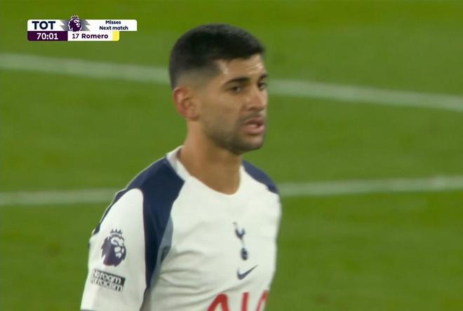 第12轮客场挑战阿森纳的北伦敦德比中,托特纳姆热刺队长克里斯蒂安-罗梅罗在第70分钟因为抗议判罚被主裁判迈克尔-奥利弗黄牌警告。
