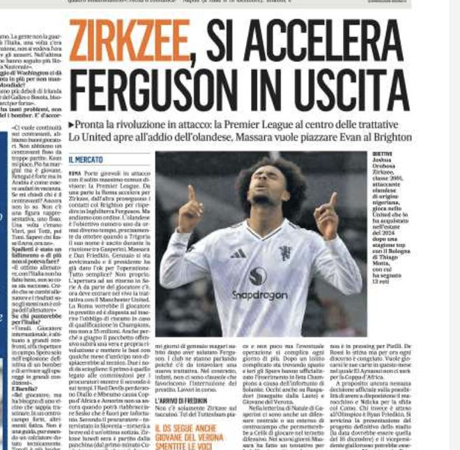 但还有其他因素也会决定曼联冬窗有没有行动,这包括青训球员科比·梅诺和替补中锋齐尔克泽的去留。上述两名曼联球员,最有可能在2月2日的冬季转会截止日期之前离开俱乐部,无论是以租借形式还是永久转会。如果他们中的任何一人真的离开,那么曼联需要寻找替代者。意大利天空体育频道报道称,罗马已开始与曼联以及齐尔克泽进行谈判,打算在1月份签下他。罗马俱乐部正努力在1月份为主帅加斯佩里尼引进一名进攻球员,加斯佩里尼希望这笔交易能在1月的前几天就完成。齐尔克泽一直都是罗马的目标,该队已经与曼联展开接洽,希望以租借形式引进他,并设定一些具体的目标作为激活永久交易的条件。但曼联希望从这笔交易中获取经济利益,最好直接买断,或者设定买断义务并且支付一些租借费。俱乐部内部人士预测,曼联1月份初会相对平静,情况确实可能如此。不过,进一步的发展仍将取决于非洲国家杯的比赛情况。在冬窗的最后两周,市场可能会变得更为繁忙。