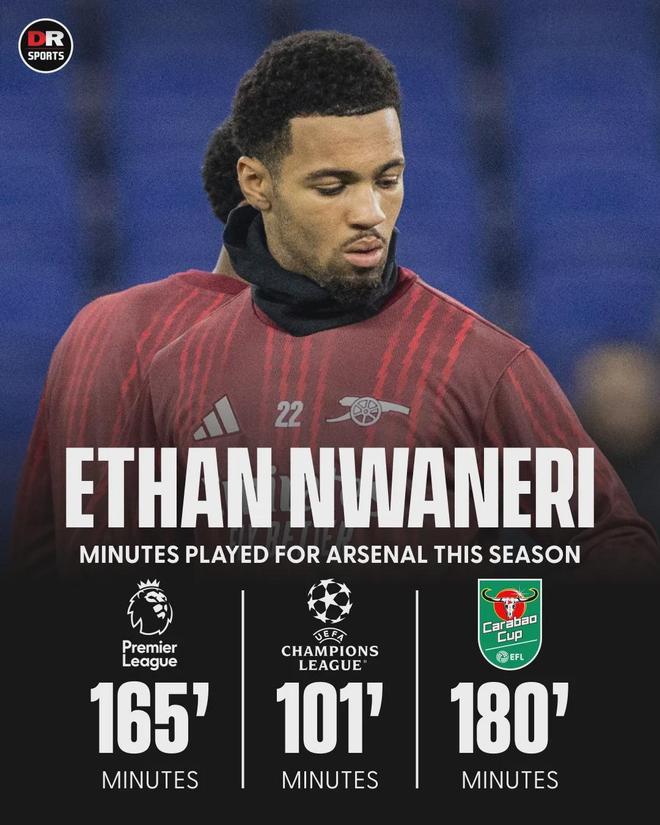 因此,恩瓦内里希望外租获得更多比赛时间,樱桃军团成为潜在下家。这位18岁的球员被形容为“现象级的天才”,原本指望续约后能获得更多机会,但自从埃泽加盟后,他的出场时间便大幅缩水。尽管本赛季马杜埃凯、马丁内利、萨卡、特罗萨德和厄德高等人先后遭遇伤病,恩瓦内里依旧不受阿尔特塔的信任,出场时间骤降。