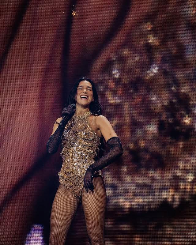 英国女歌手杜阿利帕观看阿森纳vs维拉,还在看台拍照留念