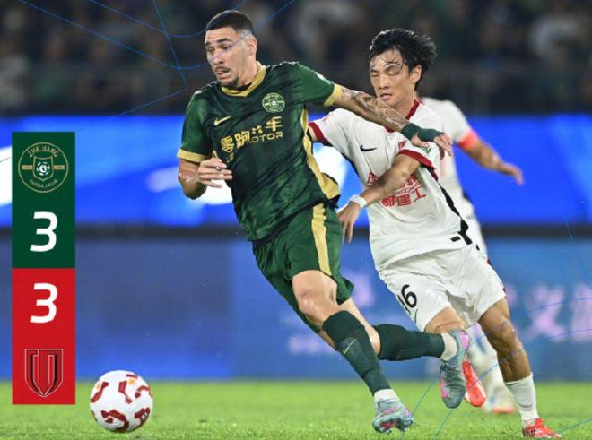 下半场,蓉城主帅徐正源让球队回防,而浙江队则豁出去疯狂进攻。第90+10分钟,浙江队在左侧推进,米特里策直塞,卡列洛在禁区里抽射近角,门将无能为力。蓉城队遭遇了读秒绝平,到手的3分变成了1分。徐正源为自己的保守付出了代价。海港在上半场也是一球领先。下半场,海港一度陷入绝境。第77分钟、第80分钟,三镇连续打进2球,海港1-2落后。第85分钟,蒯纪闻助攻,莱昂纳多抽射命中,海港2-2追平。