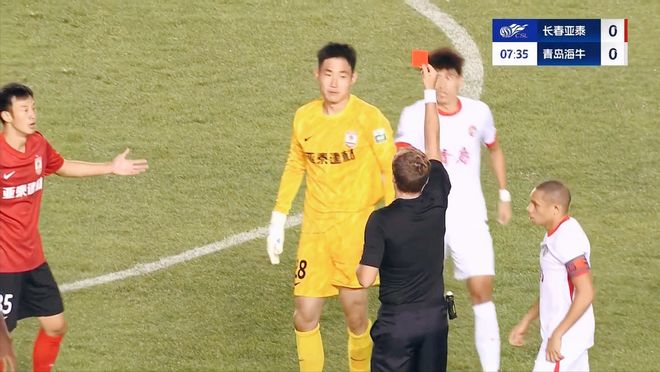 开场之后,节奏虽然不快,但是强度直接拉满!比赛仅仅进行了8分钟,王智峰出击铲倒了单刀的兰克尔泽,主裁判亚历山大金直接出示红牌罚下!长春亚泰开场遭到打击。18岁的小将安智诚临危受命,紧急披挂登场。但是没想到正是利用这个定位球,林创益直接弧线球射门得手,0:1!长春亚泰真是屋漏偏逢连夜雨,先是罚下一人,随后又是丢球。青岛海牛面对这种“泼天富贵”逐渐降低节奏,用控球来调动对手的防守。