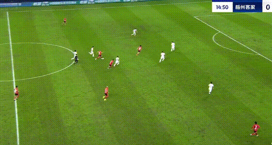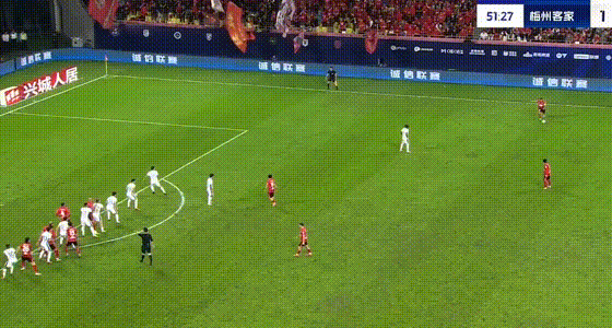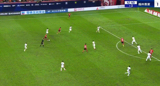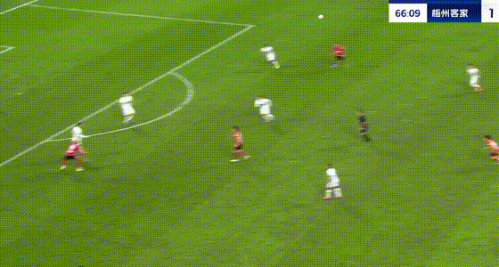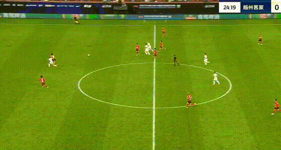 第25分钟,罗德里格带球到禁区摆脱射门,皮球打到胡荷韬变线入网,梅州客家扳平比分。