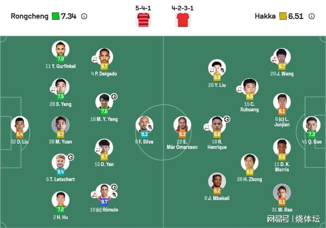成都蓉城首发【5-4-1】门将:32-刘殿座后卫:2-胡荷韬、5-提莫-莱切特、11-古尔芬克尔【90+4分,24-唐创】、26-元敏诚、28-杨帅【86分,22-李扬】中场:4-德尔加多【72分,58-廖荣祥】、10-罗慕洛【87分,17-王东升】、15-严鼎皓【72分,39-甘超】、16-杨明洋前锋:9-费利佩替补:1-蹇韬、3-唐鑫、18-韩鹏飞、19-董岩鋒、49-徐虹、25-木热合买提江、48-李漠雨梅州客家首发【4-2-3-1】门将:41-郭全博后卫:6-廖均健、11-莫里斯、20-王嘉楠【61分,5-田子羿】、31-饶伟辉后腰:28-钟浩然、4-约契奇中场:8-恩戈姆、10-罗德里格【73分,16-杨超声】、26-刘云【62分,27-邓宇彪】前锋:22-奥马尔松替补:12-孙健祥、3-魏洺赫、14-季胜攀、15-陈序煌、23-杨瑞琦、27-邓宇彪、29-茹子楠、34-张家杰、37-易县龙