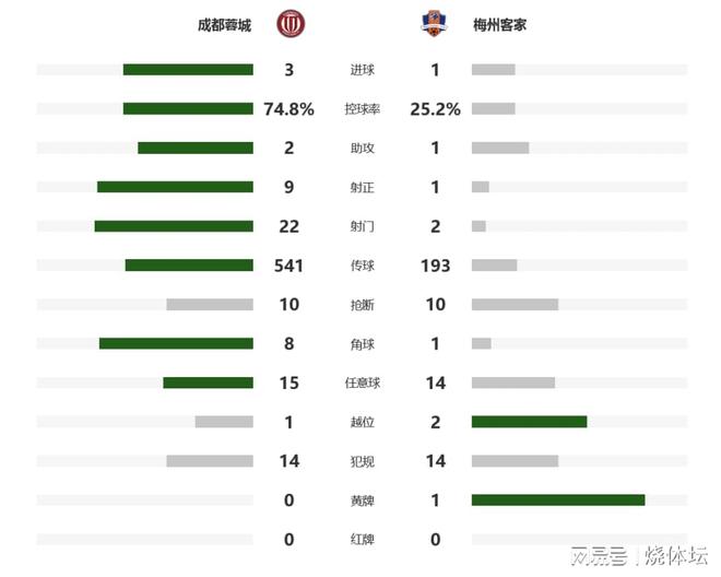 比赛焦点1、此役成都蓉城主场全取3分,总积分提升到58分,仍落后榜首的上海海港2分。2、此役梅州客家客场失利,目前仍积20分排名倒数,又面临着被挤到降级区。3、成都蓉城击败梅州,改写历史交锋战绩为9胜2平1负,同时对梅州客家5连胜。进球时刻第18分钟,罗慕洛拿球直塞到禁区,杨明洋前插射门打进,成都蓉城主场1-0领先。