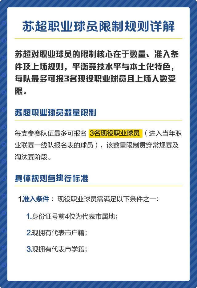 此前多场比赛 “难进一球” 的常州队,引进中超河南队队员黄紫昌后,其首秀便斩获进球,个人实力明显高出场上其他球员一筹。数据显示,“苏超” 报名的 516 人当中,现役注册职业球员接近 30 人。虽然现役注册职业球员人数不算多,但他们均是各支球队的主心骨与战术核心。根据联赛规程,苏超允许球队在常规赛结束后调整职业球员阵容,此时多支 “苏超” 球队直接引进来自中超职业联赛的球员 —— 南京队用冯伯元替换了老将吉翔,冯伯元目前效力于中超球队青岛海牛,是一名前锋球员;泰州队则用景泊羲替换吴俊杰,景泊羲是中超球队长春亚泰一线队的成员。主办方的初衷,实则是让职业球员提升比赛的观赏性。江苏省足协竞赛部部长刘国祥认为:“允许现役职业球员参加业余比赛,应该算是这次‘苏超’的一个突破。” 他表示:“我们要求每个球队不能超过 3 名职业球员,刚好差不多就是一条中轴线,就是为了保障观赏性和公平性。” 在他看来,职业球员的加入并不会影响观赏性,但人数过多可能会打破球队间的实力平衡,进而影响联赛的长期发展。