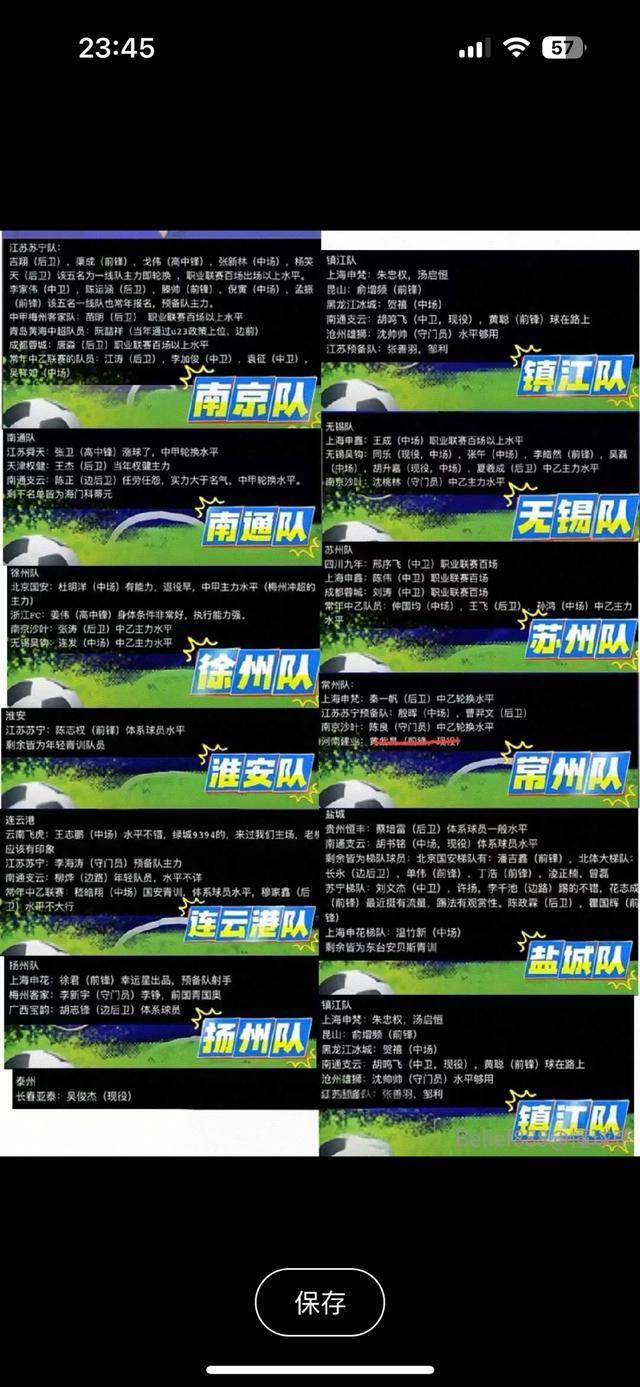 网友整理的“苏超”球队的现役、退役和未注册的职业球员名单。