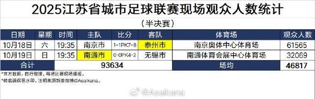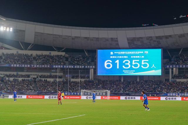 10月4日,大屏幕显示本场比赛共有61355名球迷到场观赛。 “苏超”四分之一决赛中,南京队主场与连云港队在常规时间1比1战平,通过点球大战,南京队以5比3的总比分战胜连云港队,晋级半决赛。 新华社发根据苏超规则,每支球队允许注册 3 名职业足球运动员。而南通海门珂缔缘的这些青训球员,虽以成为职业球员为目标,但目前身份并非职业球员,这使得他们能够在苏超赛场发光发热。例如球队的核心攻击手李贤成,已打进 6 球位列苏超射手榜第四,他便来自珂缔缘青训梯队,身份虽非职业球员,却拥有与职业球员相匹配的能力。后卫线主力球员郭凯楠、齐丹、黄蒋大亚,中场的季桑楠,前锋线上打进 3 球的曹越涛、打进 2 球的张浩楠,也均出自珂缔缘青训。而尹韩龙、程鑫这样的核心球员,则是珂缔缘的职业球员,占据着苏超南通队的职业球员名额。