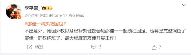 经过长达近3个月的选帅“闹剧”后,国足主帅人选终于确定,45岁的青岛西海岸主帅、前国脚邵佳一正式成为国足主帅,这也意味着国足正式进入了新周期,邵佳一将会带领国足全力冲击2030世界杯。对于国足和邵佳一来说,接下来的首要任务就是尽快组建新的国足教练团队,而据《北青体育》透露,邵佳一接下来可能会从西海岸带走杨智等部分助手赴国家队履新,另外,记者马德兴发文表示,邵佳一之所以受足协选中出任国足主帅,就是在于邵佳一在青岛西海岸期间有多位外籍助手,也就是“土主洋辅”模式备受足协认可要知道,邵佳一在执教青岛西海岸之前,并没有独立带队经验,而他之所以让青岛西海岸从一支保级升班马,在本赛季成为一支中超中游球队,他的教练组也是功不可没,所以在这种情况下,邵佳一此前在青岛西海岸助手进入国足教练组,也是顺理成章的事情。U19而据记者李平康透露,德国外教毛雷尔,以及杨智和刘健都会与邵佳一一起前往国足,这样也是完整保留了邵佳一的教练班子,有助于邵佳一迅速在国足展开工作,并且有助于邵佳一维护团队协作的连续性和战术执行的一致性。作为邵佳一的前教练,毛雷尔于1995年开启执教生涯,曾在邵佳一效力慕尼黑1860期间担任该俱乐部助理教练及主教练,而且需要注意的是,毛雷尔作为德国足球视频分析领域的开创者之一,他在上赛季与邵佳一一起加盟青岛西海岸后,主要负责战术分析等工作。至于杨智和刘健,两人作为前国脚,在国内有着不错的知名度,尤其是北京国安功勋门将杨智,作为邵佳一在北京国安时期的队友,他曾帮助北京国安拿到过队史首座中超冠军奖杯,而在杨智退役后,一直与邵佳一搭档,曾出任过国足U19守门员教练,并且一起跟随邵佳一加盟青岛西海岸……当然了,根据国足以往的惯例,不排除足协会给邵佳一提供“人手”,所以现在对邵佳一来说,最需要的就是足协的支持,给予邵佳一充足的时间和耐心,对此,你是如何看待的呢?欢迎在评论区留言、探讨!