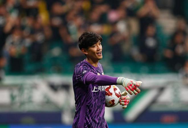 9月21日,上海海港队守门员颜骏凌在比赛中。 当日,在北京工人体育场举行的2025赛季中国足球超级联赛第25轮比赛中,北京国安队主场2比3不敌上海海港队。 新华社记者 胡星宇 摄